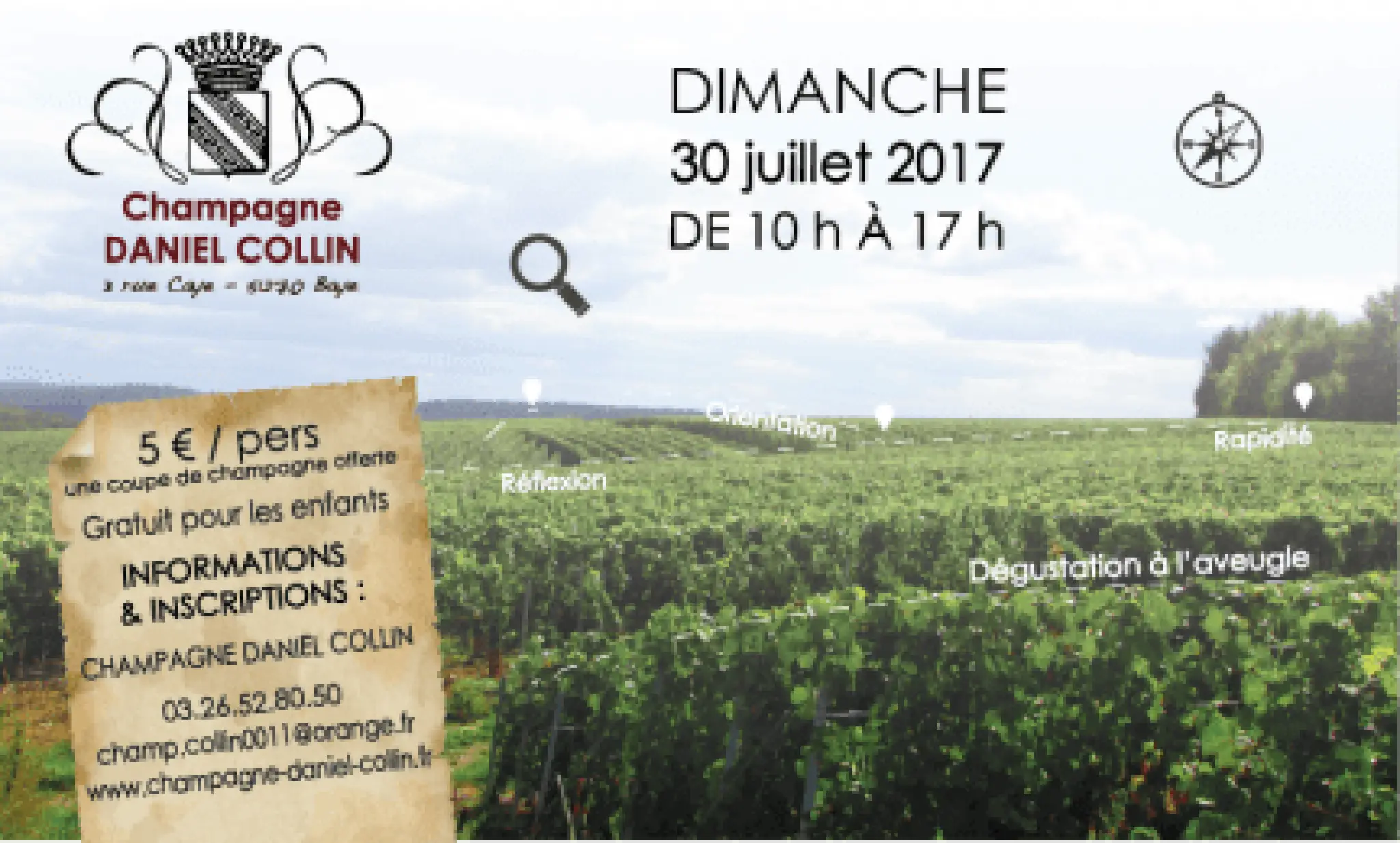 Ontdek de Champagne op een andere manier met een speurtocht in het hart van Champagne wijngaarden. Een uitdaging voor het hele gezin waar reflectie en oriëntatie belangrijk zijn! Ontdek samen de geheimen van de wijngaard en de wijnbereiding door de verschillende quizzen, spelletjes, raadsels en zelfs een blinde Proeverij!