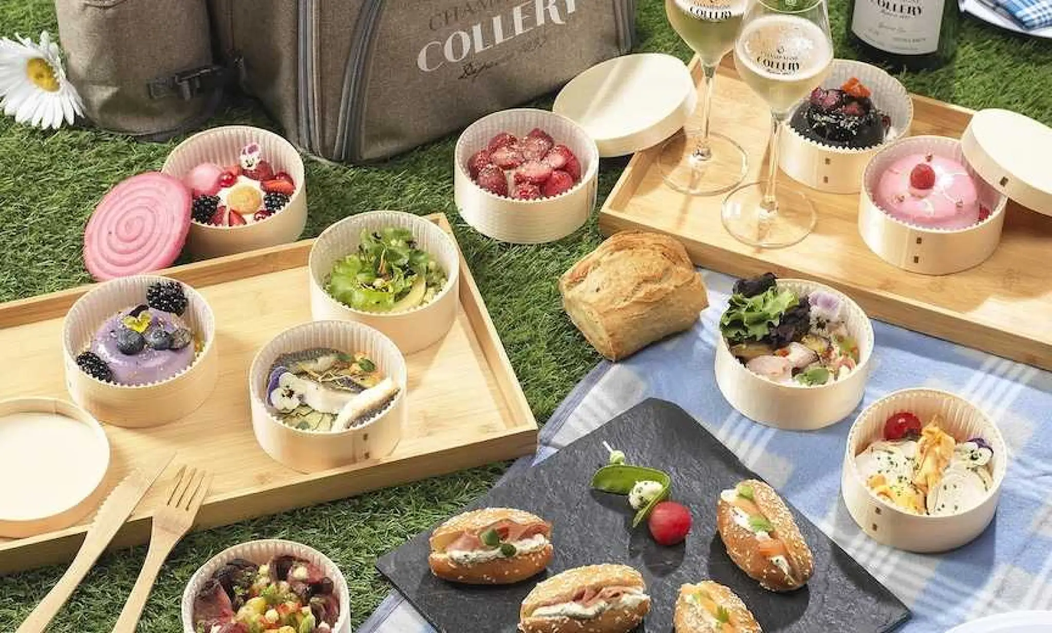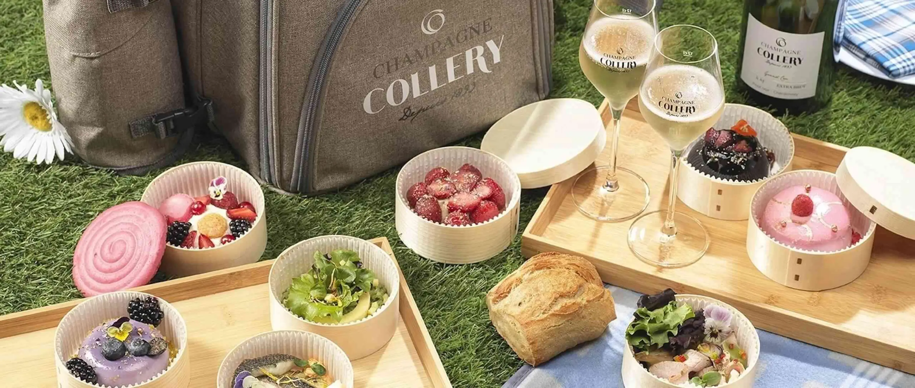 De drie Champagnes bieden een heerlijke voortgang van smaken die perfect passen bij de verse ingrediënten van het picknickmenu.