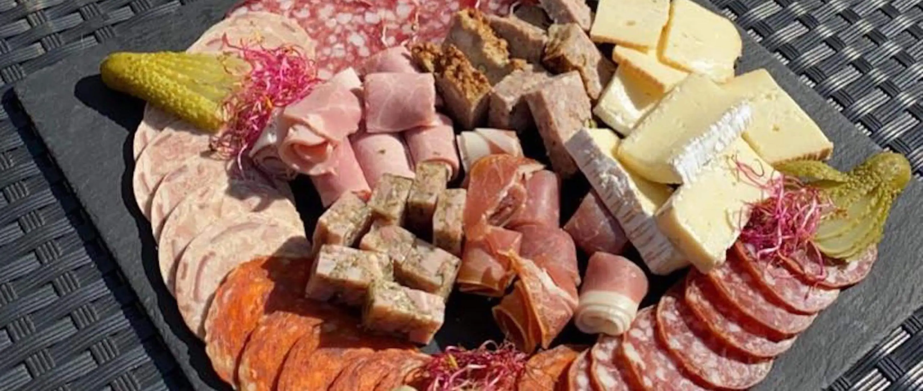 Geniet van verschillende vleeswaren en kazen voor twee personen vergezeld van onze Carte Noire Brut Champagne.